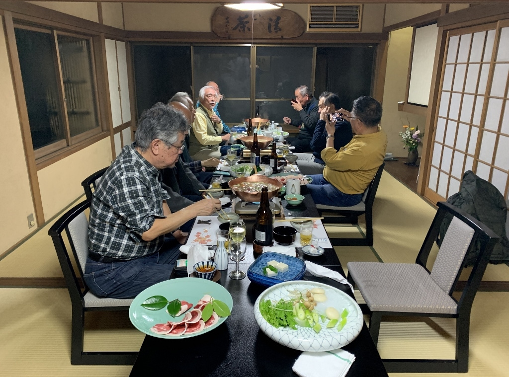 残念ながら、私の目では美しい紅葉はあまり確認できませんでしたが、久しぶりに古都京都の風情に触れた気がしました。また、べにやさんでの会食は、いつも通りの豊富な話題とともに、柴田さんにいただいたワインも加わり、見た目にも美しい牡丹鍋を堪能することができました。身も心もすっかり温まり、いっとき寒さを忘れてしまいました。