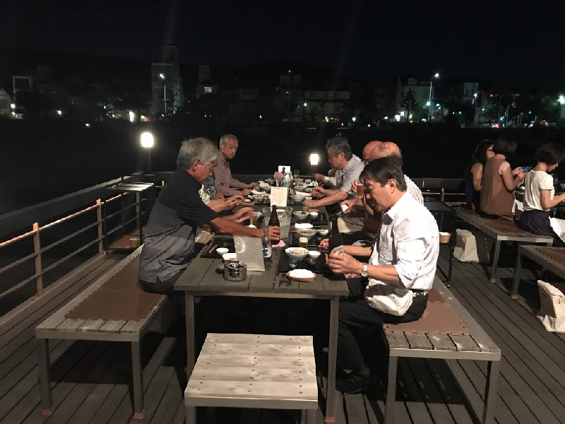 しかし、お店の床の席に座ると川面を通る風の心地よさ、きれいな月、夏から秋の移ろい始める空気に、情緒を感じました。