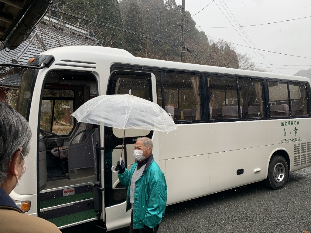 京都市内から日中のバス送迎でしたが、5年前のとり幸さんでの集い時もバス送迎でした。