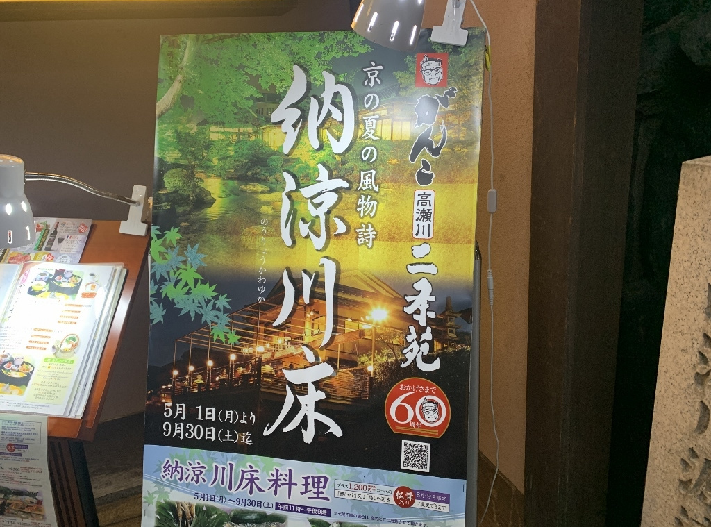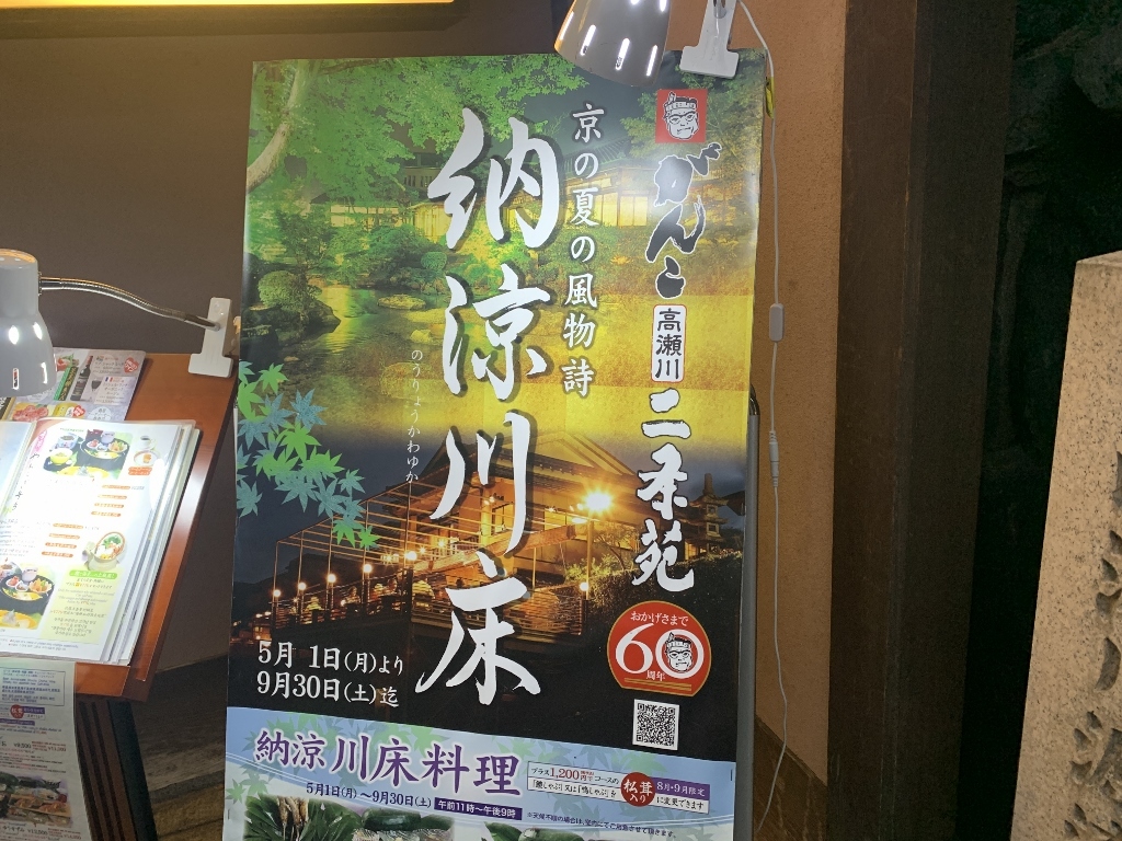 幹事様から洛游会のご案内を頂き、8月30日のがんこ高瀬川二条苑での鴨川納涼床に参加させて頂きました。