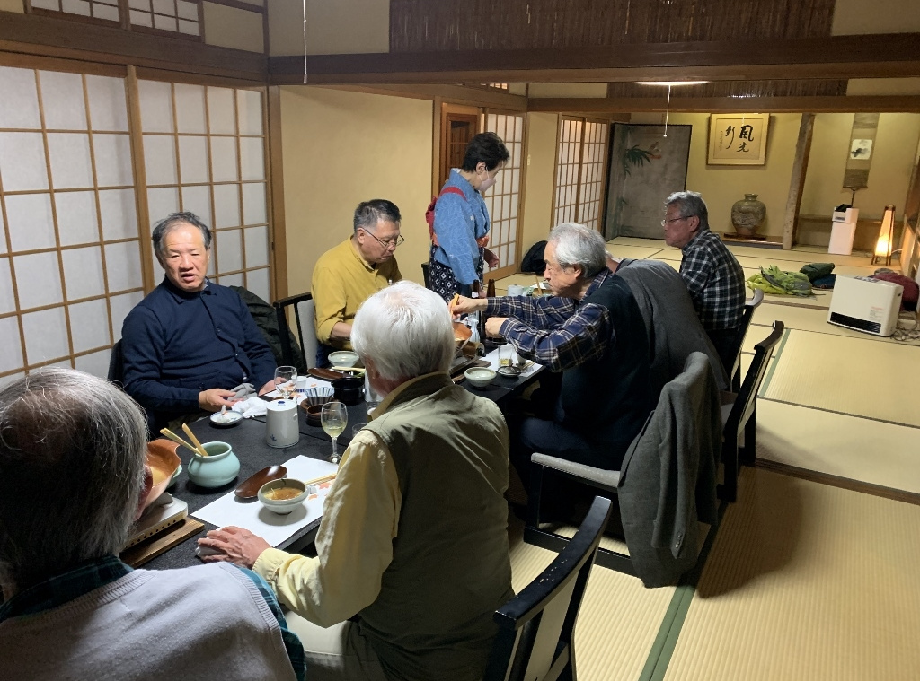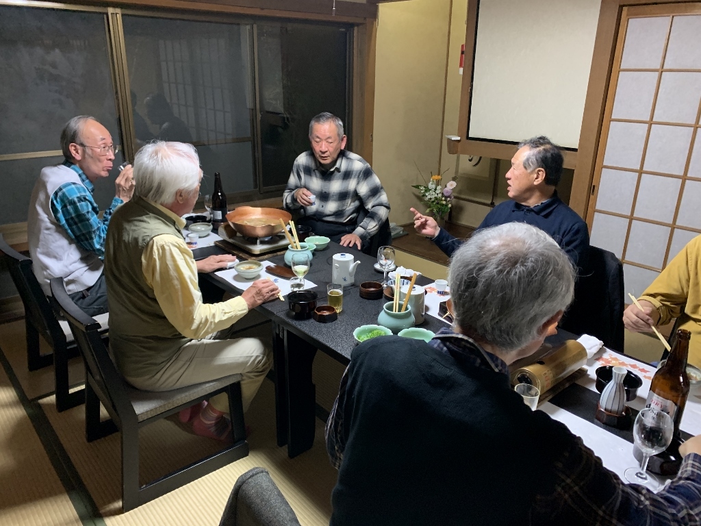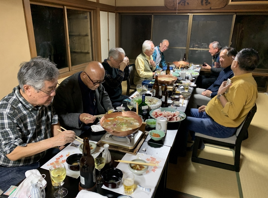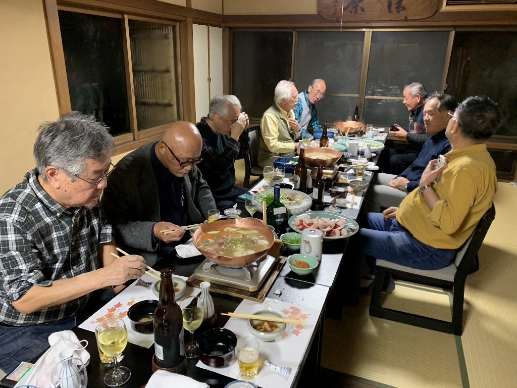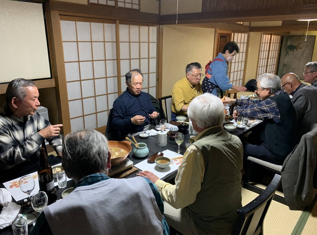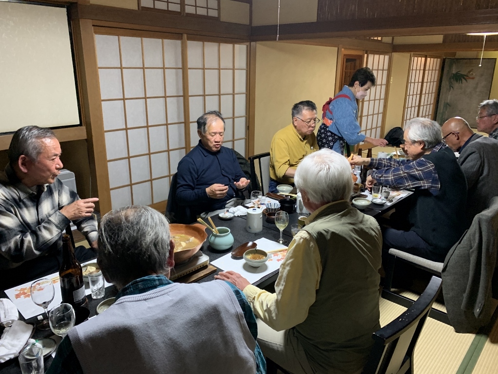 残念ながら、私の目では美しい紅葉はあまり確認できませんでしたが、久しぶりに古都京都の風情に触れた気がしました。また、べにやさんでの会食は、いつも通りの豊富な話題とともに、柴田さんにいただいたワインも加わり、見た目にも美しい牡丹鍋を堪能することができました。身も心もすっかり温まり、いっとき寒さを忘れてしまいました。