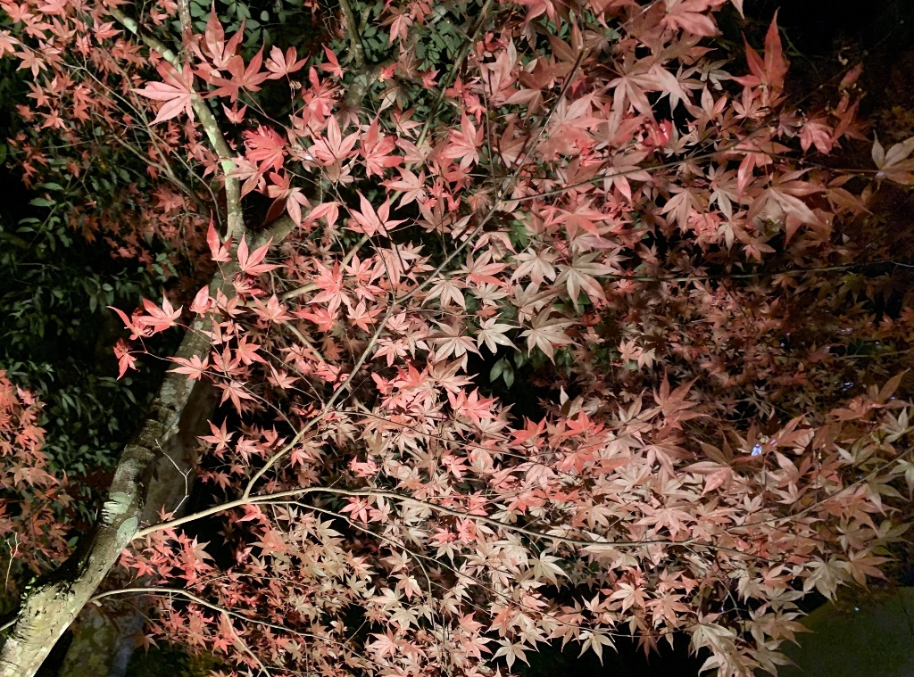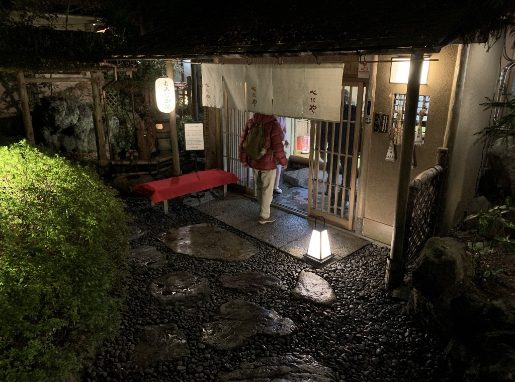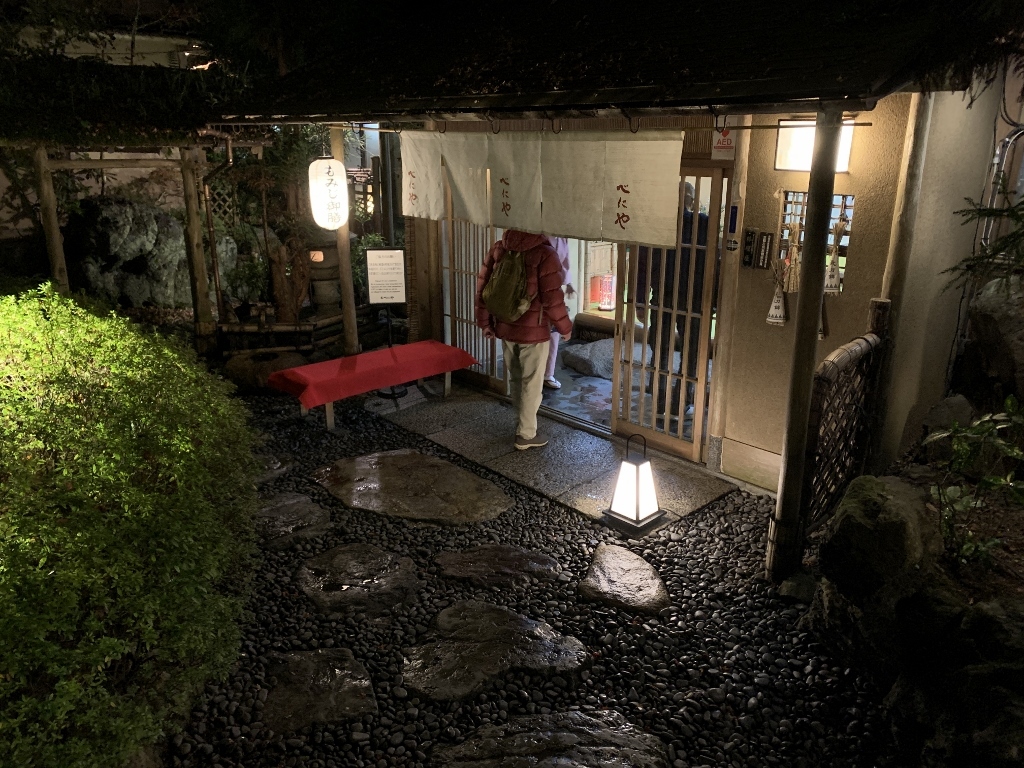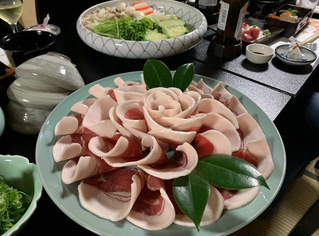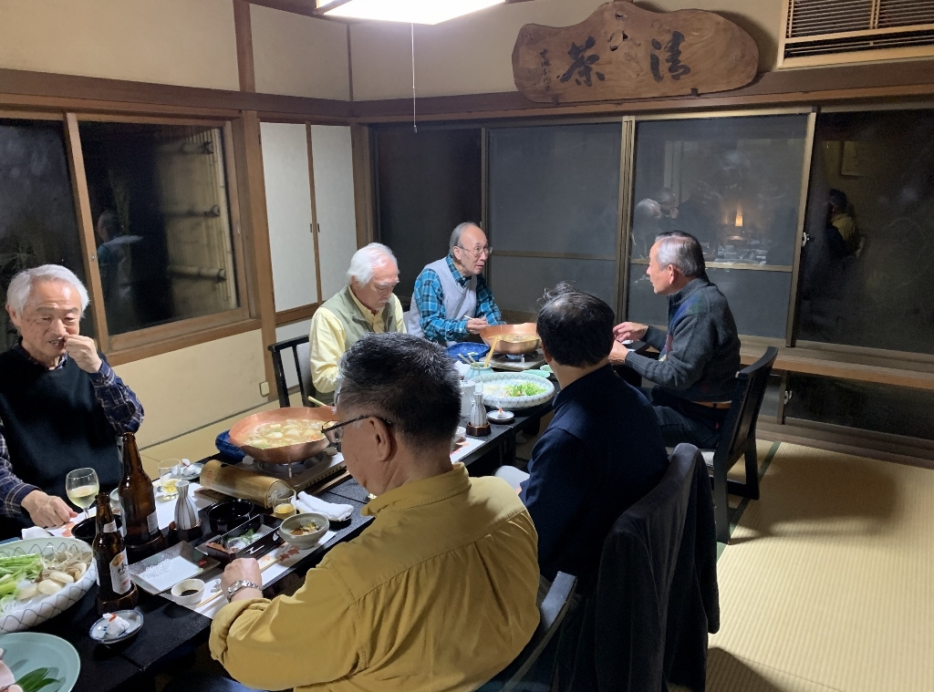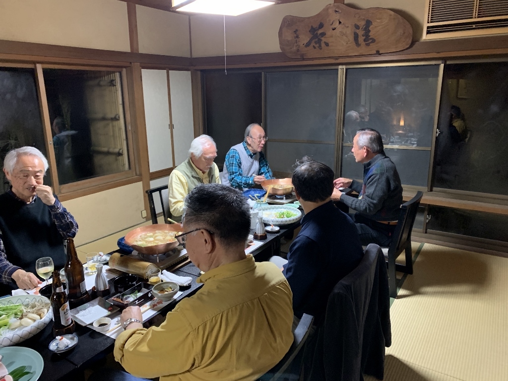 残念ながら、私の目では美しい紅葉はあまり確認できませんでしたが、久しぶりに古都京都の風情に触れた気がしました。また、べにやさんでの会食は、いつも通りの豊富な話題とともに、柴田さんにいただいたワインも加わり、見た目にも美しい牡丹鍋を堪能することができました。身も心もすっかり温まり、いっとき寒さを忘れてしまいました。