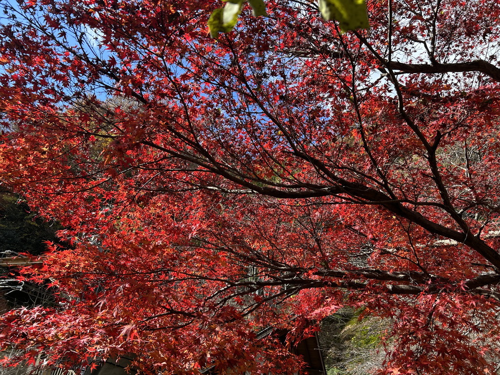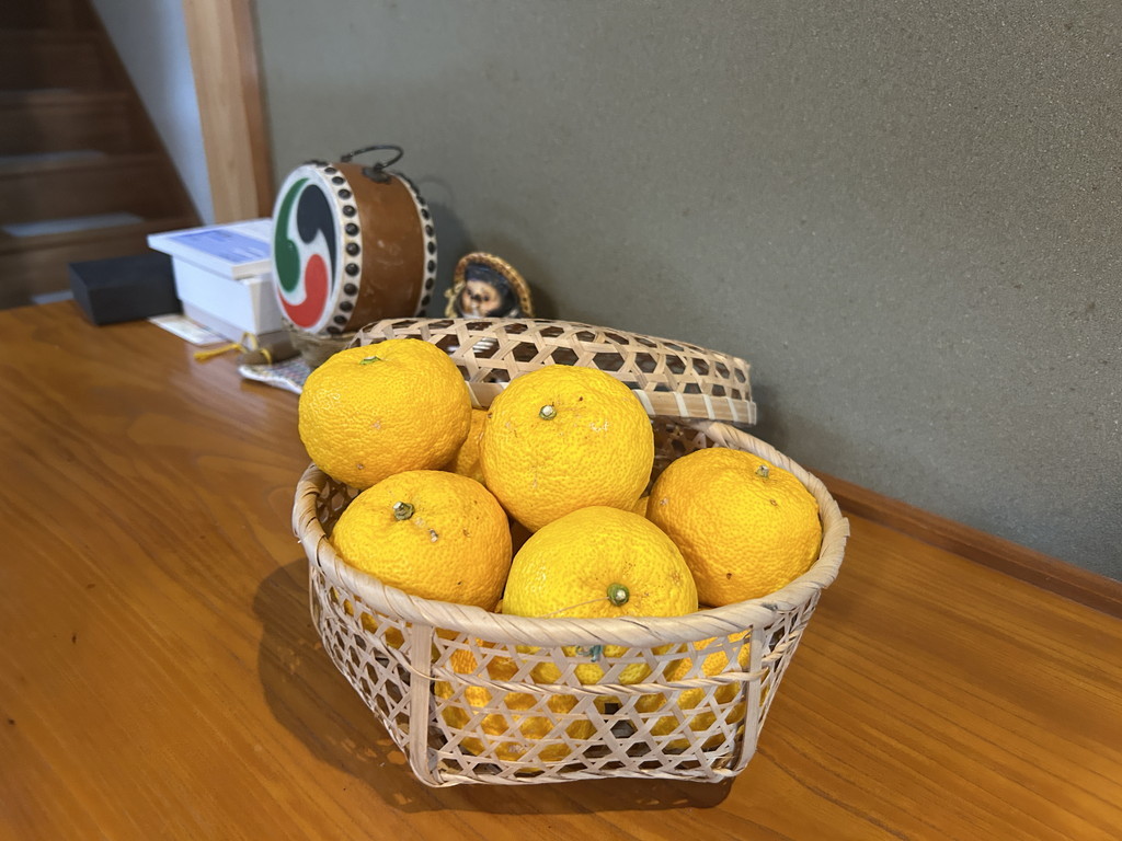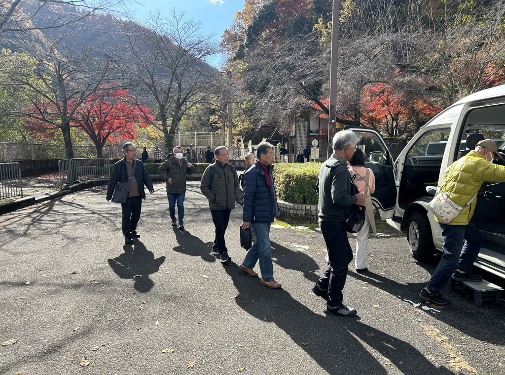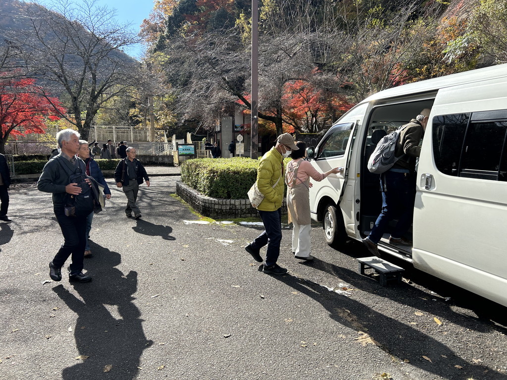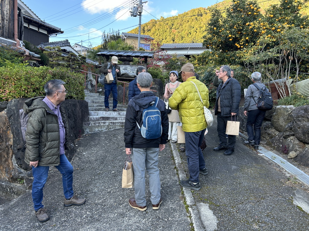 柔らかな秋の日差しが心地よく注ぎ、また、山々を彩る紅葉とユズの黄色のコントラストが見事に調和し、気持ちの良い一日を過ごさせていただきました。さらに、女優の常盤貴子さんが入浴されたという「ユズ風呂」に浸かりながら、彼女の余韻を密かに楽しんだ方もいらっしゃったようです。春に訪れた際に、紅葉とユズが合体した風景がどうしても見たくなり、奥村様や松尾様にご無理なお願いをお聞きいただきました。ありがとうございます。