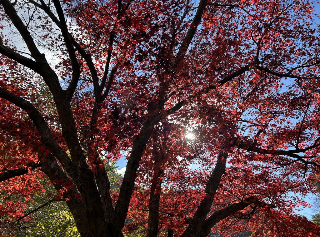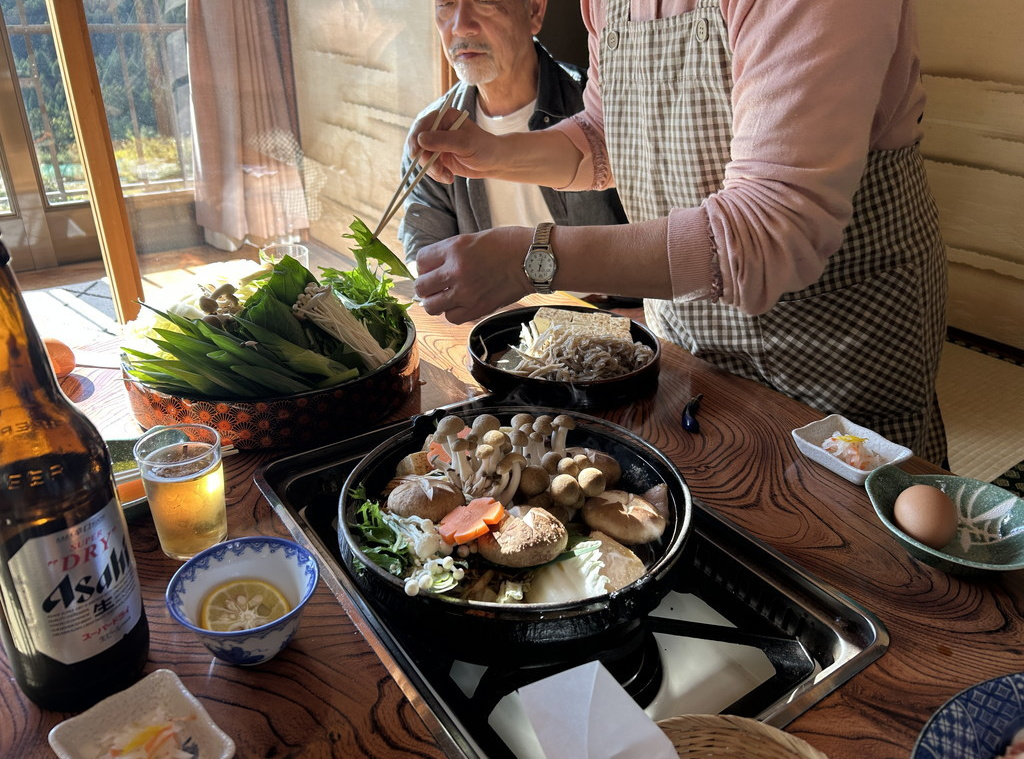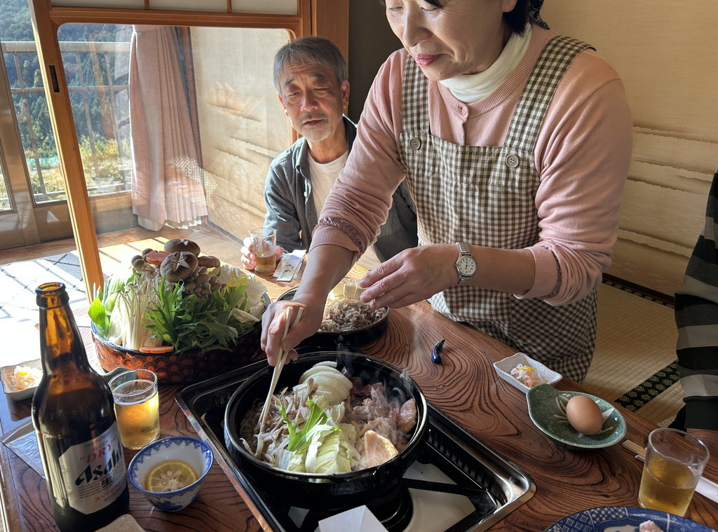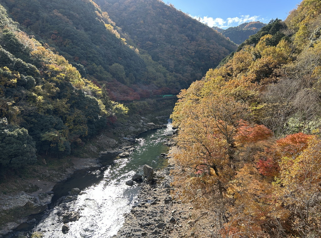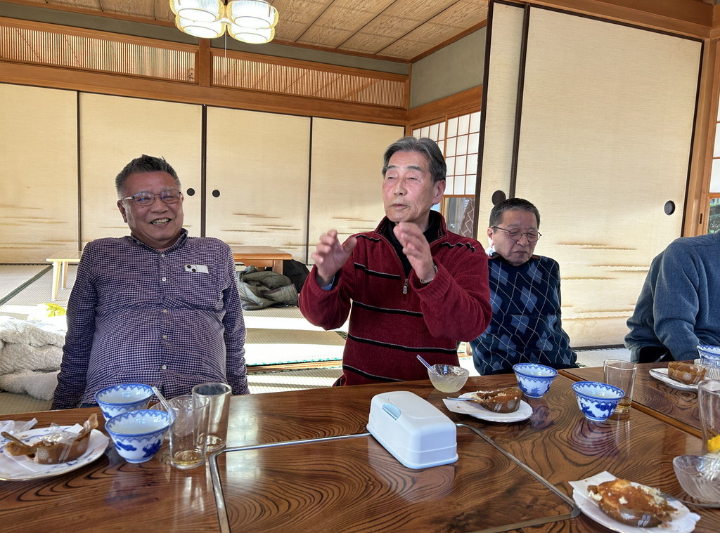 柔らかな秋の日差しが心地よく注ぎ、また、山々を彩る紅葉とユズの黄色のコントラストが見事に調和し、気持ちの良い一日を過ごさせていただきました。さらに、女優の常盤貴子さんが入浴されたという「ユズ風呂」に浸かりながら、彼女の余韻を密かに楽しんだ方もいらっしゃったようです。春に訪れた際に、紅葉とユズが合体した風景がどうしても見たくなり、奥村様や松尾様にご無理なお願いをお聞きいただきました。ありがとうございます。